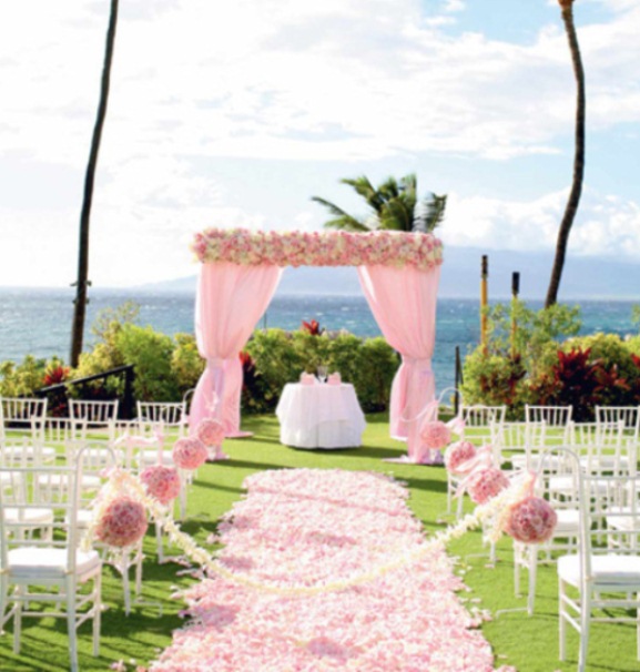 Дорожка из лепестков высокой плотности. Стоимость указана за 1 пакет (10л) с разноцветными лепестками для дорожки. Одного пакета хватает примерно на 1-2 кв. метров дорожки. Пакет лепестков с выбором цветовой гаммы — 1500р. Пакет белых лепестков — 1800р.