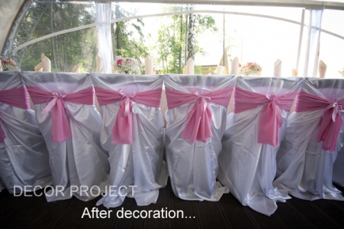 Короткие полосочки на стул из шифона, органзы, подкладки. Различные цвета на Ваш выбор!Стоимость указана за аренду. Монтаж 10 рублей/стул.
