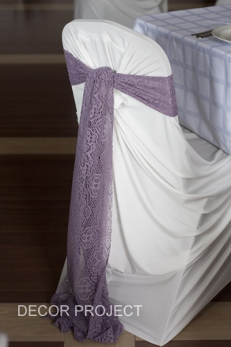 Кружевная полоса из ткани. Возможны различные пастельные оттенки.Стоимость указана за аренду. Монтаж 10 рублей/стул.